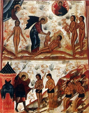 Obwohl das Paar vor allem für seine Sünde bekannt ist, gibt es auch viele Wiederauferstehungs-Ikonen, auf denen dargestellt ist, wie Christus Adam und Eva aus ihrem Grab emporhebt. Auf vielen Ikonen des Allerheiligen-Typs sind sie am Throne Gottes Andacht haltend mit dem traditionellen Heiligenschein (Nimbus) um ihre Köpfe zu sehen. Auch in liturgischen Texten finden sich zahlreiche Hinweise auf die Erlösung der „Ersterschaffenen“ durch Christus. Die Kirchentradition spricht also dafür, dass sie sich unter den Erlösten befinden. Dennoch werden Adam und Eva auch häufig als Grund für den kollektiven Sündenfall genannt, vor allem im Gegensatz zu Jesus Christus, den Neuen Adam. Dieser bildliche Gebrauch führt dazu, dass sie von Vielen als Beispiel für eine in der Vorgeschichte versunkene Realität verstanden werden, die aber für die Selbstenthüllung Gottes in Christum wesentlich war.