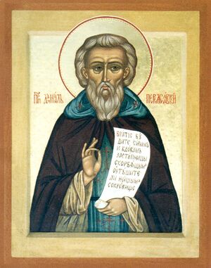 Als Sohn der Adligen Konstantin und Feodosija, der späteren Nonne Fekla, aus Mcensk um 1460 in Pereslawl-Salesski geboren, wurde er auf den Namen Dimitrij getauft. Er empfing in jungen Jahren die Mönchsweihe auf den Namen Daniel im Kloster des hl. Pathnutios von Borowsk und führte sein geistliches Leben unter der Leitung des hl. Leucios von Volokolamsk (Fest: 17. August). Später kam er in das Niketas-Kloster zu Pereslawl. Seine besondere Tugend bestand darin, dass er mittellose Tote begrub. Bei dem Friedhof gründete er selbst 1508 ein Kloster zu Ehren der Heiligsten Dreiheit. Besonders ehrte ihn Zar Vasilij III., der ihn zum Erzieher seiner Söhne loann und Georgij machte. Daniel starb am 7. April 1540. Die Erhebung der Gebeine fand 1652 statt. Seit dieser Zeit gibt es eine örtliche Verehrung.