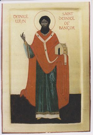 Der hl. Hierarch Deiniol (Daniel) wurde als Sohn eines keltischen Stammesfürsten um das Jahr 510 geboren und gründete im frühen 6. Jahrhundert zwei Klöster in Gwynedd. Das erste davon in Bangor, nachdem ihm König Maelgwn von Gwynedd das entsprechende Land übertragen hatte, wo er auch Abt wurde. Deiniol nahm an der Synode von Llanddewi Brefi teil, bei der er vom walisischen Nationalheiligen St. David zum Bischof von Bangor geweiht wurde. Nach seiner Rückkehr von der Synode soll er noch mehrere Kirchen gegründet haben. Er entschlief um das Jahr 584.