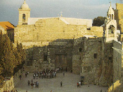 Gottfried sendete Tankred mit 100 Rittern nach Bethlehem, und sie besetzten es in nur einem Tag. Im Jahr 1103 n. Chr. schreibt er, dass das ganze Gebiet verwüstet war und nur die Kirche noch aufrecht stand. In den folgenden 50 Jahren waren die Schäden so groß, dass sie der byzantinische Kaiser Manuel Komninos, freigiebig instand setzen ließ. Johannes Fokas schreibt in seinem Werk über die Heiligen Stätten, dass der römische Bischof die Figur von Kaiser Manuel auf den Altar der Geburtsgrotte stellte. Nach der Auflösung des Königreichs der Kreuzfahrer behielten die Kaiser von Konstantinopel den orthodoxen Klerus weiterhin in Bethlehem, indem sie die rachsüchtige Wut der Moslems durch reiche Geschenke beschwichtigten. Im Jahr 1348 sandte Kantakouzinos dem Sultan der Mameluken in Ägypten, Nasventin Hassan, eine Botschaft durch Lazarus, den Patriarchen von Jerusalem, der sich für die Auferstehungskirche und die anderen Heiligtümer einsetzte.