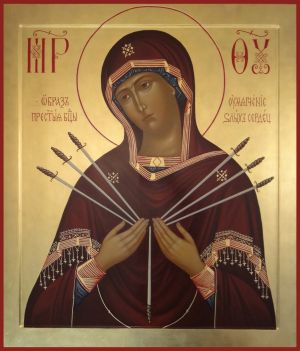 In der Tradition bezieht sich diese Ikone auf die Prophezeiung des Greisen Simeon an die Gottesgebärerin bei der Darstellung Christi im Tempel, siehe Lk 2,34-35