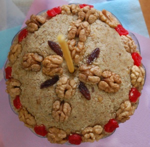 Möchte man den Weizen mit Walnüssen zubereiten, sollte man folgendermaßen vorgehen: Den gekochten und getrockneten Weizen fein mahlen (z. B. mit einem Fleischwolf), ca. 300g gemahlene Walnüsse und Zucker dazu geben und alles sorgfältig vermischen, auf einen Teller oder Schüssel servieren, ebenfalls mit Walnüssen oder Würfelzucker kreuzförmig dekorieren.