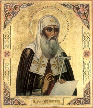 Der hl. Hermogenes (Germogen) lebte und wirkte zu einer Zeit, da schwere Leiden das russische Volk prüften, als große Gebiete Weißrusslands unter polnische Herrschaft fielen und der orthodoxe Glaube arg bedrängt wurde. Die Polen drangen sogar bis Moskau vor und stürmten das heilige Sergius-Dreiheitslavra.