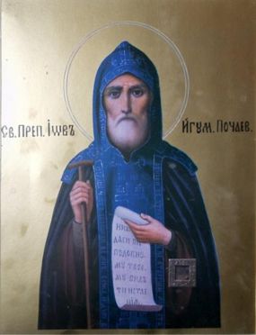 Der Heilige Hiob (Iow), welcher mit bürgerlichem Namen Iwan Scheleso hieß, wurde um 1551 im Dorfe Pokutje im südwestlichen Galizien in einer kleinadeligen Familie geboren. Schon mit zehn Jahren trat er in das Verklärungs-Kloster von Ugorniki ein und empfing nach zwei Jahren die Mönchsweihe. Um 1580 wurde er Priestermönch und leitete dann auf Ersuchen des bekannten Förderers der Orthodoxie in diesem von der Union bedrohten Gebiet, des Fürsten Konstantin Ostroschski, das Kreuzerhöhungs-Kloster bei Dubno, dem er trotz aller Widrigkeiten von Seiten der polnischen katholischen Obrigkeiten wie der Unierten mehr als zwanzig Jahre vorstand. Anfang des 17. Jahrhunderts ließ sich Hiob in einer Höhle auf dem Berge von Potschajew ,unweit des alten Mariä-Entschlafen-Klosters nieder, bis ihn die Bruderschaft dieses Konventes bat, die Abtswürde zu übernehmen. In dieser Eigenschaft nahm er an der Kiewer Synode von 1628 teil, welche gegen die Union einberufen worden war. Dieser Intention diente auch das weitere Wirken Hiobs, besonders die Druckerei seines Klosters. So wurde die Lavra von Potschajew zu seinen Lebzeiten zu einem geistlichen Zentrum der Orthodoxen in der südwestlichen Rus. Nach 1642 nahm Hiob das Große Schema mit dem Namen Johannes (Ioann) an. Von da an lebte er wieder häufig in seiner Höhle. Er starb 1651 im Alter von mehr als 100 Jahren, von denen er über die Hälfte in Potschajew verbracht hatte.