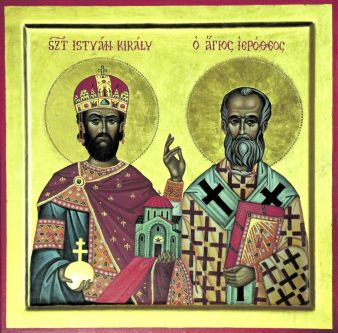 Der hl. und apostelgleiche Stephan kam 969 als Sohn von Arpadenfürst Géza zur Welt. Von einem Missionspriester wurde er von Kindheit an christlich erzogen. Im Alter von 26 Jahren heiratete Stephan Gisela, die Schwester von Heinrich II. Durch mehrere Siege über heidnische ungarische Fürsten förderte Stephan das Vordringen des Christentums im ganzen Land. Zusammen mit seiner Frau Gisela stiftete er Kirchen und Klöster, unterstützte die Arbeit von Mönchen und Missionaren und gründete zahlreiche Bistümer und Erzbistümer in Ungarn. Durch ihn wurde die gesamte Kirche Ungarns geordnet. An Weihnachten des Jahres 1000 wurde Stephan zum ersten König seines Landes gekrönt. Er entschlief am 15. August 1038. Stephans bis heute unverweste rechte Hand gilt als nationale Reliquie.