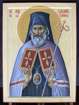 Dein lichttragendes Gedächtnis, Hierarch Kallinikos, erfreut die Seelen der Gläubigen; und die Berührung deines Schreines heiligt unsere Sinne und schenkt Heilungen. Darum ehren wir dich, wie es sich gebührt, und rufen dir voll Freude zu: Freue dich, gottbeseelter Vater!