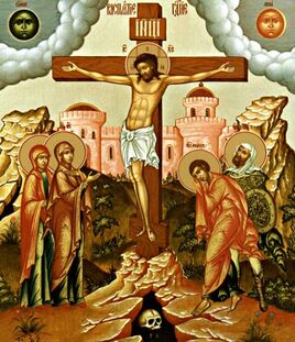 Nach der kirchlichen Überlieferung war Longinus derjenige, der die Seite des gekreuzigten Erlösers mit einem Speer ritzte und durch das Blut und Wasser, das aus der Wunde rann, von seinem Augenleiden geheilt wurde.