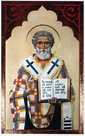 Der Herr Jesus Christus war dem heiligen Petrus einmal in Gestalt eines zwölfjährigen Kindes erschienen und trug dabei ein Gewand, das von oben bis unten zerrissen war. Der hl. Petrus fragte den Erlöser, wer sein Gewand zerrissen habe, und ER entgegnete: „Der Verrückte Arius hat es zerrissen, indem er die Menschen spaltet, die ich mit meinem Blut erlöst habe. Empfange ihn nicht zur Kommunion mit der Kirche, denn er hat übel getan an mir und meiner Herde.“