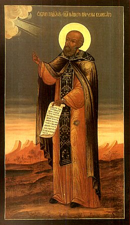 Durch das Fackellicht deiner göttlichen Taten erleuchtet im Verstande, bist du erschienen als nicht untergehendes Gestirn der Unterscheidung, das zerstreut der Leidenschaften finsteren Wahn und erleuchtet unsere Gedanken. Pimen, du Frommer, bitte Christus Gott, dass er uns schenke das große Erbarmen.