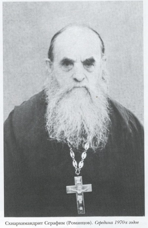 Der Heilige Mönch Seraphim (Romantsow), Schema-Archimandrit, war einer der bedeutendsten Starzen der Neuesten Zeit. Er wurde am 28. Juni 1885 im Dorf Woronok des Gouvernements Kursk in die Familie eines Bauern namens Roman Romantsow geboren und auf den Namen Ioann getauft. Er absolvierte die kirchliche Gemeindeschule, damals die Hauptform der Schulbildung auf dem Lande. 1910 trat Ioann nach dem Tod seiner Eltern ins Glinskaja-Pustyn-Kloster ein. Dort war er zunächst in der Brotbäckerei, danach in der Böttcherei tätig. Nach dem Anfang des Ersten Weltkriegs wurde er 1914 zum Militär gezogen und 1916 verwundet. Nach seiner Genesung kehrte er in die Einsiedelei zurück. 1919 erhielt Ioann Romantsow die Mönchsweihe auf den Namen Juvenalius. So begann für den Jung-Mönch die geistliche Hochschule, die Zeit der Meisterung der schwierigsten spirituellen Wissenschaft - des monastischen Lebens. Sein geistlicher Lehrer war Priestermönch Aristoklius (Weter), der ihm beibrachte, täglich seine Gedanken zu beichten und bei allen Bewegungen seines Herzens aufmerksam zu sein. Im Weiteren hielt Vater Seraphim dieses innere Tun für sehr wichtig für Wachstum und Heil der Seele.