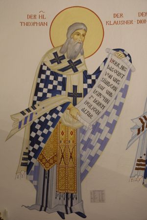 Der Heilige Theophan der Einsiedler (Theophan der Klausner, russ. Феофан Затворник) (1815-1894), verherrlicht 1988, war ein bedeutender russischer Starez im 19. Jahrhundert, der einen Großteil seiner Seelenführung auch auf brieflichem Wege durchführte. Als zutiefst frommer Asket und Glaubenszeuge übte er beachtlichen Einfluss auf die geistliche Wiedergeburt der zeitgenössischen Gesellschaft aus. Er vermittelte seine Erfahrungen mit dem Gebets- und Asketenleben in einer Form, die auch Laien zugänglich war. Zu einem der Schätze seiner Erben als Theologen und Bibelwissenschaftler gehört seine umfangreiche Auslegung des Neuen Testaments.