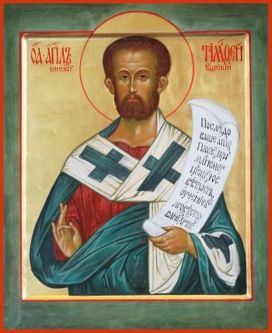 Timotheos stammte aus Lystra (in der heutigen Türkei). Er wurde von Paulus auf der ersten Missionsreise für den christlichen Glauben gewonnen und war sein treuester Begleiter und Mitarbeiter. Auch während der römischen Gefangenschaft war er bei Paulus. Nach alter Überlieferung war Timotheus der erste Bischof von Ephesus. Zwei von den paulinischen Briefen sind an ihn gerichtet.