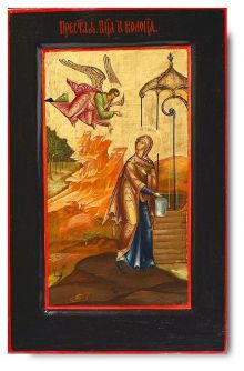 Als sich die Zeit erfüllt hatte und die Menschheit vom Fluch des Todes durch die Ankunft des Erlösers in der Welt errettet werden sollte, musste eine reine und makellose Jungfrau gefunden werden, die würdig war, der Menschwerdung Gottes zu dienen. Und sie wurde gefunden, die Reinste und Makelloseste, die Frömmste aller Menschen, die Allheilige, die Allreine und über alles gesegnete Jungfrau Maria. Sie stammte aus königlichem und hohepriesterlichem Geschlecht; ihre Eltern waren die gerechten Joachim und Anna. Die Frucht ihrer Gebete, ihres Fastens und ihres ganzen frommen Lebens war Maria. Die Allreine Jungfrau war im Alter von drei Jahren in den Tempel gekommen und lebte dort etwa zwölf Jahre und verbrachte die Zeit mit Gebet und Handarbeit.