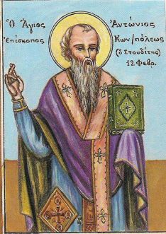 Der Heilige Antonios trat nach dem Tode seiner Mutter mit zwölf Jahren in ein Kloster ein. Später wurde er Vorsteher desselben Klosters und nahm seinen Vater als Mönch auf. Im Jahre 893 wurde er zum Patriarchen von Konstantinopel erwählt und bewirkte zusammen mit Kaiser Leo dem Weisen viel für das Wohl der Kirche von Konstantinopel. Er entschlief in Frieden im Jahre 895.
