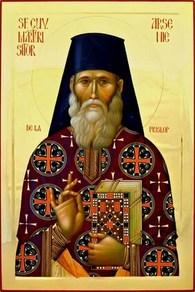 Der heilige Bekenner Arsenie (Boca) von Prislop (29. September 1910 – 28. November 1989) war ein rumänischer Priester, Theologe, Mystiker und Künstler. Er wurde von der Rumänischen Kommunistischen Partei verfolgt.