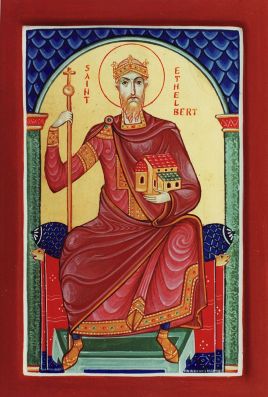 ) der Angelsachsen in Kent. Durch seine Heirat mit Bertha, der einzigen Tochter des Frankenkönigs Charibert, lernte er das Christentum kennen und wurde nach 597 wohl von Augustinus von Canterbury, den er 596 freundlich und hilfsbereit empfangen hatte, getauft. Gegenüber den von Papst Gregor dem Großen nach England geschickten Missionaren zeigte er sich sehr aufgeschlossen und unterstützte sie. Er gilt als wohltätig gegen Arme und Verfasser weiser Staatsgesetze. Ethelberts Tochter Æthelburh heiratete Edwin von Northumbrien, der sich dann taufen ließ. Gregor der Große verglich Ethelbert nach dessen Tod im Jahre 616 mit dem hl. Kaiser Konstantin dem Großen.