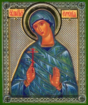 Die heilige Märtyrerin Eugenia war Römerin von Geburt. Sie lebte in Alexandria, wo ihr Vater Philipp Kaiser Commodus (180-192) als Präfekt diente. Sie genoss eine gute Erziehung und war bekannt für ihre Schönheit und ihr einnehmendes Wesen. Viele ansehnliche Jünglinge hielten um ihre Hand an, aber sie wollte nicht heiraten, sondern ihre Jungfräulichkeit bewahren.