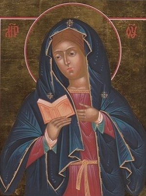 Bei ihrer Arbeit entdeckten sie ein großes Paket, welches mit einem Leinentuch bedeckt war. Das (bescheidene) Mädchen packte es aus und sah ein Bild einer Frau in dunklem Gewand mit einem Buch in ihren Händen. Sie schätzte das Bild als das Portrait einer Klosterfrau ein, welche Eudokia zur Vernunft bringen wollte und so entschuldigte sie (Eudokia stellvertretend), dass jene zur Äbtissin respektlos gewesen war.