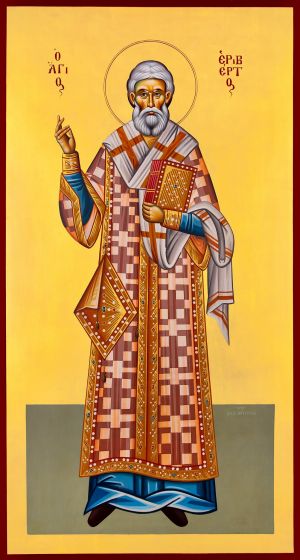 Κολωνίας ἐδείχθης άρχιεράρχης καλός, ὁσιότητι βίου Πάτερ κοσμούμενος, Ἑριβέρτε σοφέ, καὶ ποιμὴν άληθινός, Ἐκκλησίας στηριγμός, μοναστῶν καθηγητής, δοχεῖον τοῦ Παρακλήτου, καὶ νῦν δυσώπει ἀπαύστως, ἐλεηθῆναι τὰς ψυχὰς ἡμῶν.