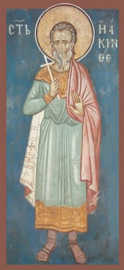 Der hl. Hyákinthos lebte im 4. Jahrhundert in der Stadt Amastris am Schwarzen Meer. In Frömmigkeit erzogen zeigte er von zartester Kindheit an die Anzeichen der Huld Gottes. In seinem Eifer für Gott fällte eine Ulme die als heidnische Kultstätte diente, um so dem heidnischen Kult in seiner Heimatstadt ein Ende zu machen. Jedoch forderte die zornige Bevölkerung, die durch die heidnischen Priester aufgehetzt wurde seinen Tod. So errang er das Martyrium und ging ein in die himmlische Herrlichkeit.
