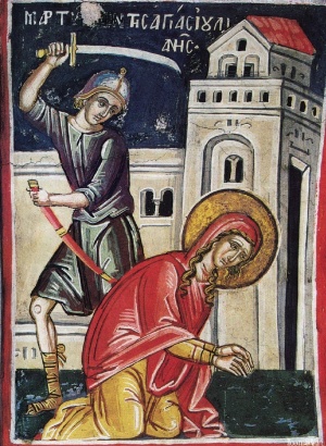 Die hl. Juliana verweigerte dem Stadtpräfekten Eulogius von Nikomedia als Christin die Ehe, wurde verfolgt, mit Ruten geschlagen, an den Haaren aufgehangen und - nachdem flüssiges Blei auf ihr Haupt gegossen worden war - gefesselt und in den Kerker geworfen. Sie wurde aufs Rad gespannt, das ein Engel zerstörte, der sie dann heilte; anschließend in einen Kessel mit siedendem Blei gesetzt, blieb aber unbeschädigt; und wurde schließlich enthauptet. Mit ihr starben 500 Männer und 130 Frauen als Märtyrer, dies geschah im Jahre 304. Die Reliquien der Hl. Juliana befinden sich in Neapel.