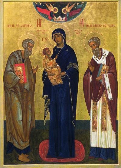 So mögen wir denn auf deine mütterlichen Gebete, Allheilige Gebieterin, dereinst im Königtum deines Sohnes der Schau des abendlosen Lichtes gewürdigt werden und die wesenseine und unteilbare Heilige Dreiheit, den Vater und den Sohn und den Heiligen Geist, ohne Unterlass lobpreisen in alle Ewigkeit.