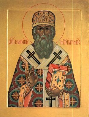 Der heilige Erleuchter Makarios (Makarij), Metropolit von Moskau und ganz Russland, wurde um 1482 geboren. In seiner Jugend empfing er die Mönchsweihe im berühmten Kloster von Borowsk des ehrwürdigen Paphnutios (Paphnuti). 1506 wurde er zum Vorsteher des Luschetzki-Klosters der Geburt der Mutter Gottes nahe Moshaisk ernannt. 1526 wurde Archimandrit Makarios zum Erzbischof von Groß-Nowgorod und Pskow erhoben, auf einen der ältesten Bischofsstühle der Moskauer Metropolie. Es begann nun die Sorge des Hierarchen Makari um den Wohlbestand der Klöster, um die Erleuchtung der nördlichen Völker mit dem Lichte des christlichen Glaubens und um den Bau und die Ausgestaltung von Kirchen. Er nahm die grandiose Mühe auf sich, das "Große Menäon" (russ. «Большие Четьи-Минеи») zusammenzustellen, das geistliche russische Schrifttum des 16. Jahrhunderts. 1542 wählte das Konzil der russischen Bischöfe Makarios zum Metropoliten von Moskau und ganz Russland; er wurde der neue Ratgeber des jungen Zaren Ioann IV. Wassiljewitsch. Er segnete den Krieg gegen das Kasaner Khanat, sagte den künftigen Sieg voraus und ließ zu Ehren des errungenen Sieges in Moskau die Mariä-Schutz-und-Fürbitte-Kathedrale (Kathedrale Basilius des Seligen) erbauen.
