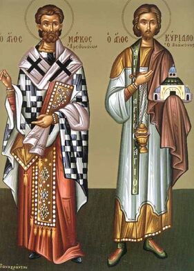 Wir werden über die Leiden des hl. Markos durch den hl. Gregor den Theologen und den sel. Theodorit unterrichtet. Gemäß diesem Bericht zerstörte Markos in der Regierungszeit des Kaisers Konstantin einen heidnischen Tempel und bekehrte viele zum Glauben an Christus. Als Julian den Thron bestieg und kurz darauf vom Glauben an Christus abfiel, verleugnete gleichfalls ein Einwohner von Arethusa Christus und kehrte zum Heidentum zurück. Daraufhin erhoben sie sich gegen Markos, denn er hatte ihren Tempel zerstört, und sie verlangten, er solle entweder ihren Tempel wiederaufbauen oder eine große Geldsumme bezahlen. Da der betagte Markos beides ablehnte, wurde er ausgepeitscht, verspottet und durch die Straßen gezogen. Dann trennten sie ihm die Ohren ab mit einem dünnen, aber starken Faden. Daraufhin entkleideten sie ihn, rieben ihn mit Honig ein und ließen ihn in der Hitze des Sommers an einen Baum gebunden zurück, so daß er von Wespen, Moskitos und Hornissen gestochen wurde. Alles erduldete der Märtyrer Christi, ohne zu klagen. Markos war sehr alt, aber im Aussehen leuchtete er wie ein Engel. Die Heiden verringerten den Preis für ihren Tempel immer mehr und schließlich forderten sie von Markos eine unbedeutende Summe, die dieser ihnen leicht hätte geben können; doch er lehnte es ab, ihnen auch nur eine Münze für diesen Zweck zu geben. Seine Geduld machte starken Eindruck auf die Einwohner der Stadt, und sie begannen ihn zu bewundern und Mitleid für ihn zu empfinden. Dann verringerten sie den Preis des Tempels auf fast nichts, um ihn am Leben zu lassen. Schließlich ließen sie ihn frei, und einer nach dem anderen empfing von ihm Unterweisung und kehrte zum Glauben an Christus zurück. Zur selben Zeit litt in der Stadt Heliopolis am Fuß des Libanon-Berges ein Diakon namens Kyrillos aus demselben Grund. In der Zeit, in der sich das Christentum der Freiheit erfreute, zerstörte Kyrillos einige Götzenstatuen, und unter Julian dem Apostaten wurde er grausam gemartert. Die Heiden waren gegen ihn derart aufgebracht, daß sie ihn aufschlitzten und seine Eingeweide mit ihren Zähnen zerrissen. Am selben Tag, als der hl. Kyrillos umkam, erlitten auch viele andere das Martyrium. Die boshaften Heiden schnitten ihre Körper in Stücke, vermischten sie mit Gerste und verfütterten sie an die Schweine. Die Strafe kam bald über sie: All ihre Zähne fielen aus, und aus ihrem Mund kam ein unerträglicher Gestank.