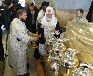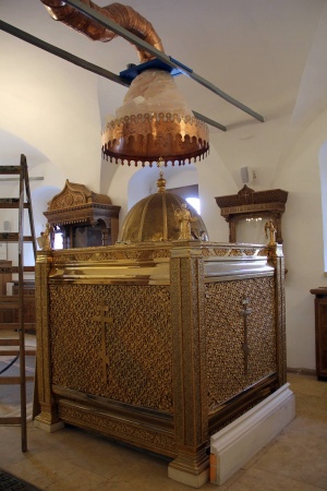 Das heilige Myron – ein wohlriechendes vom Patriarchen geweihtes Öl – wird einmal in einigen Jahren geweiht und danach an die verschiedenen Pfarreien für die Spendung des Sakraments der Myronsalbung verschickt . Es wird im Taufkästchen des Priesters zusammen mit den anderen Utensilien aufbewahrt, die für die Taufe und Myronsalbung erforderlich sind.