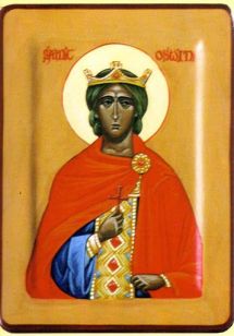 Liebenswürdigkeit und Demut strahlten aus von dir, o leuchtender Märtyrer Oswin. Vom heiligen Aidan zum christlichen Herrscher geformt, erleuchtetest du den Norden Britanniens. Ehre sei Ihm, der dich stärkte; Ehre sei Ihm, der dich krönte; Ehre sei Ihm, der durch dich Heilung für alle bewirkt.