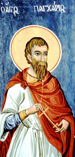 Voller Zorn über seinen nun ehemaligen Freund ließ der Kaiser den Senat zusammenrufen, um dem hl. Pancharios einer standesgemäßen Gerichtsverhandlung zu überantworten. Der hl. Pancharios wurde zur öffentlichen Ausgeisselung im großen Amphitheater der damaligen Hauptstadt des Römischen Reiches verurteilt und danach dem Gouverneur von Nikomedia übergeben, der ihn enthauptete. So erlitt der hl. Pancharios den Märtyrertod für Christus im Jahre 303, um ewig mir Ihm zu leben.