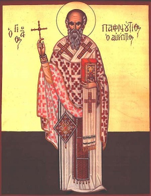 Der heilige Märtyrer Paphnutius stammte aus Ägypten und führte seinen Glaubenskampf in der Wüste. Während der Christenverfolgung unter Diokletian (284-305) befahl Statthalter Hadrian, den Heiligen Paphnutius vorzuführen. Der Asket wartete nicht ab, bis die Schergen ihn holten, und erschien vor dem Kaiser, bekannte seinen Glauben an Christus und wurde der Folter unterworfen.