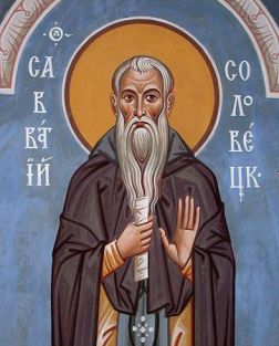 Der Ehrw. Sabbatios trat 1396 in das Kloster des Kyrill vom Weißen See ein. Er siedelte aber dann auf die Valamo-Insel am Ladoga-See über, weil er sein Leben in größerer Abgeschiedenheit verbringen wollte. Obwohl er dort bald zum geistlichen Führer des Konventes aufstieg, suchte er nach noch mehr Abgeschiedenheit und verließ gegen den Willen des Abtes nachts heimlich das Valamo-Kloster, um sich ganz in die Einsamkeit auf die Solovki-Insel am Weißen Meer zurückzuziehen, wo er an der Mündung des Flusses Wyga am Örtchen Soroka den hl. Hermann traf.