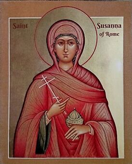 Die hl. Märtyrerin und Jungfrau Susanna war die Tochter des römischen Presbyters Gabinus und die Nichte des Papstes Gaius. Gaius und Gabinus waren aus königlichem Stamm und Verwandte des damaligen Kaisers Diokletian. Kaiser Diokletian hatte einen Adoptivsohn namens Galerius, der nach dem Wunsch Diokletians Susanna heiraten sollte. Doch Susanna, völlig Christus dem Herrn ergeben, wollte von Heirat nichts wissen und insbesondere nichts von einer Heirat mit einem ungetauften Mann. Die Aristokratinnen Claudia und Maxima, die sie baten, den Sohn des Kaisers zu heiraten, bekehrte Susanna zum christlichen Glauben zusammen mit ihrem ganzen Hauswesen. Erzürnt darüber, befahl der Kaiser den Henkersknechten, Claudia und Maxima mit ihren Familien nach Ostia zu bringen, wo sie lebendig verbrannt und ihre Asche ins Meer geworfen wurde. Susanna jedoch wurde in Gabinus’ Haus enthauptet. Serena, die Frau des Kaisers, insgeheim eine Christin, holte Susannas gemarterten Leib in der Nacht und begrub ihn ehrenvoll, und Papst Gaius wandelte jenes Haus, in dem Susanna getötet wurde, in eine Kirche um und hielt dort Gottesdienste. Kurz nach den Leiden dieser Braut Christi erlitten auch ihr Vater Gabinus und ihr Onkel Gaius das Martyrium. Sie alle litten ehrenvoll im Herrn und empfingen den Kranz der Herrlichkeit im Jahr 295 oder 296.