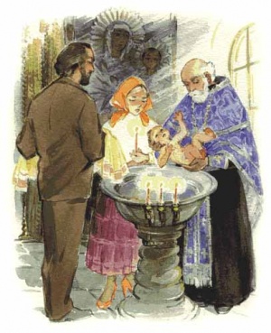 Wenn in einer Familie Kinder geboren werden, wünschen orthodoxe Eltern, sie bald taufen zu lassen. Den kirchlichen Regeln nach findet die Taufe nicht früher als am 40. Tag nach der Geburt statt, wenn die Mutter schon zu Kräften gekommen ist und das Recht hat, die Kirche wieder zu betreten, nachdem der Priester für sie das Reinigungsgebet gelesen hat.
